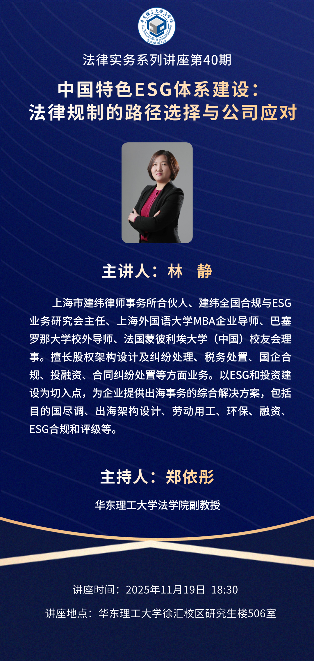 讲座预告-中国特色ESG体系建设:法律规制的路径选择与公司应对