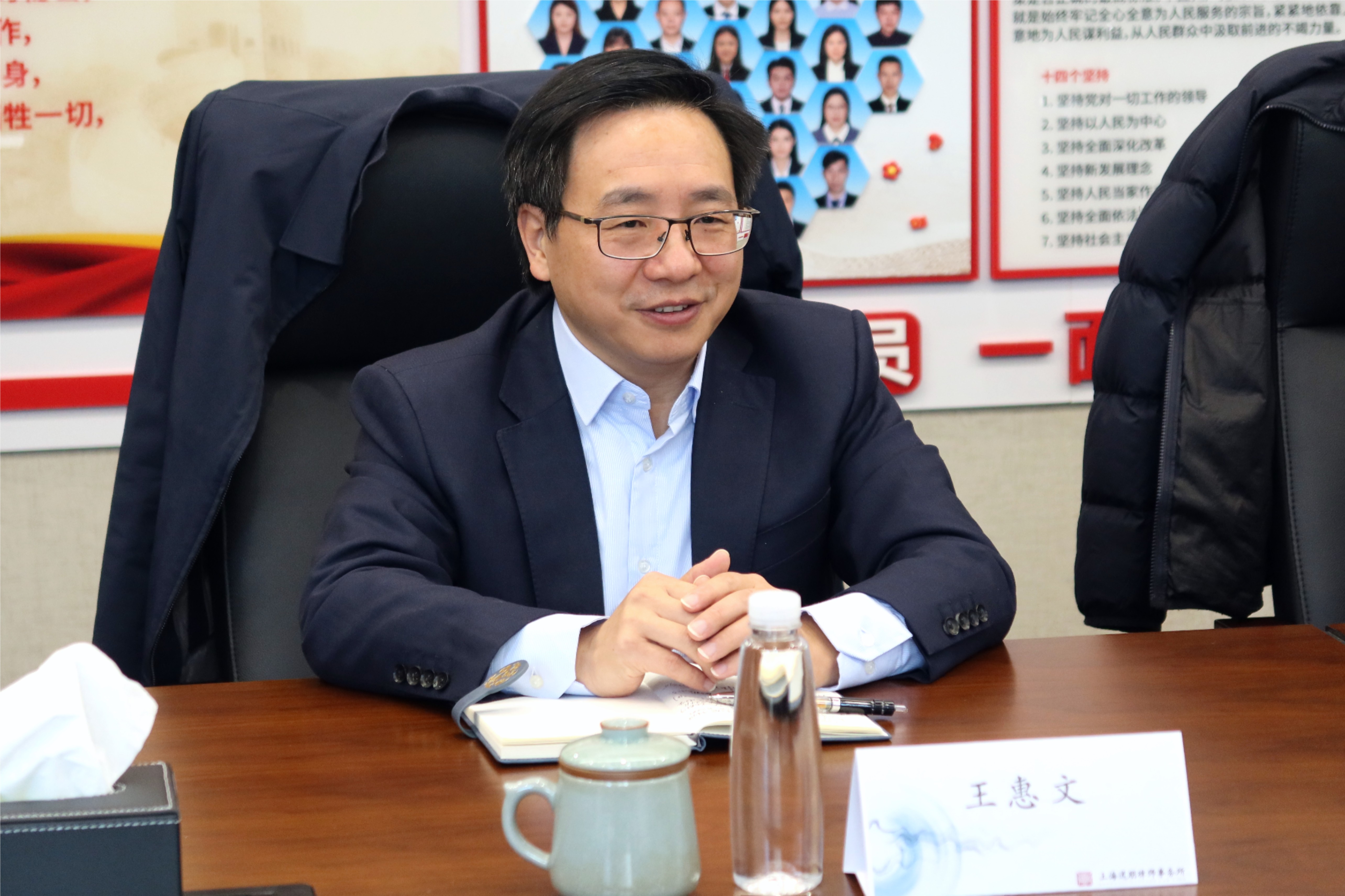 王震宇律师首先对法学院一行人的到来表示热烈欢迎,并围绕律所的发展历程、人员规模等基本情况进行介绍。他指出,道朋所中的“道朋”取自“大凡君子与君子以同道为朋”一语。华理法学院同道朋所的合作由来已久。目前,法学院已先后聘请道朋律所周郁生、王震宇、秦仲嘉、沈家东四位合伙人,分别担任兼职教授或校外导师。期待双方未来能够丰富合作形式,在人才培养、所校共建等方面取得进一步成效。
