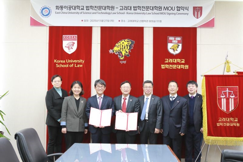 双方回顾自2018年以来,尤其是2024年我校党委书记蒋传海率团访问高丽大学后取得的丰硕合作成果。双方重点交流两校法学院在学科建设、人才培养及国际化办学方面的合作,并就全球化背景下法学教育面临的共同挑战与机遇交换了意见。基于深厚的学术积淀与共同的发展愿景,在龚跃及双方代表的共同见证下,两校法学院正式签署了谅解合作备忘录,将为培养具有国际视野的高素质法治人才共筑新平台。会后,龚跃向高丽大学赠予了“华东理工大学——高丽大学友谊奖学金”证书,并诚挚邀请高丽大学学生来我校交流学习,成为深化中韩理解、促进友好合作的青年力量。