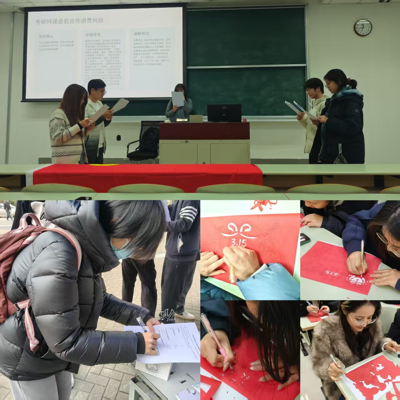 各团支部以3·15为契机,将专业学习与维权实践深度融合,开展了形式多样的主题团日活动。活动形式涵盖问卷调研、实景演绎、实操教学,并将法治教育与传统文化相融合,让维权意识在艺术创作中深入人心。系列活动以学促行、以行践知,展现了法学学子知行合一的专业素养与法治担当。
