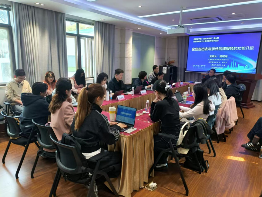 讲座中,姚建龙以“企业走出去与涉外法律服务的功能升级”为主题,结合国家战略、上海实践和已有研究成果,系统分析了企业出海风险与涉外法律服务的重要性。他特别提到我国海外投资分布广、行业多,海外利益保护问题日益突出,需加快建设海外综合法律服务体系。围绕如何提升涉外法律服务质效,报告比较了上海、浙江和江苏等地做法,总结各地围绕企业需求导向、推进平台整合和资源协同的相关举措。最后,主讲人从人才培养和智库支撑角度,强调涉外法律人才培养需突破“外语+法律”的简单叠加,注重实务经验与综合能力,并分享了上海社会科学院作为重要研究机构和国家高端智库的相关实践和探索。