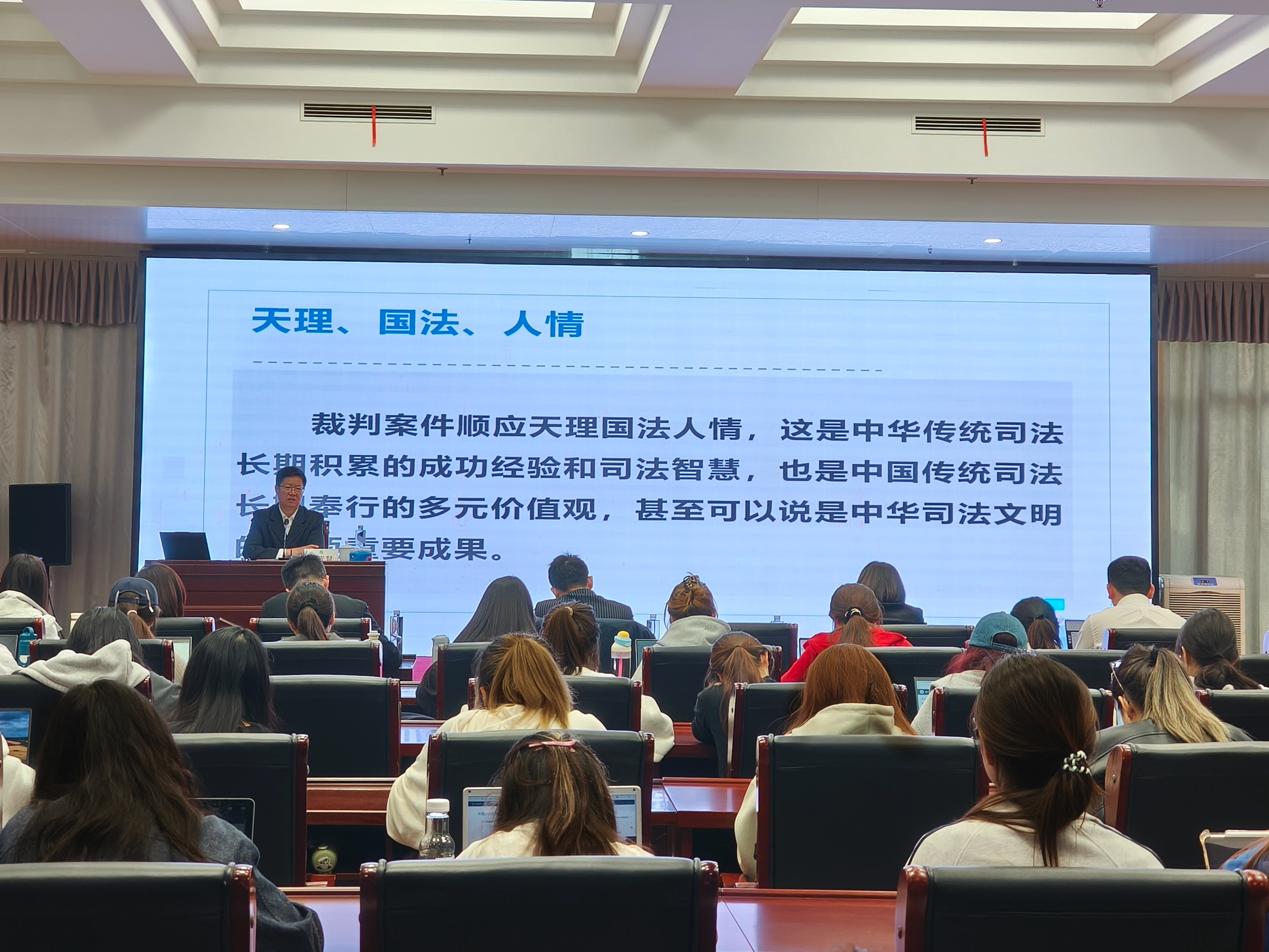 王光贤在讲座中指出,新时代的刑事审判承载着人民群众对公平正义的殷切期盼。刑事审判从来不是冰冷的法律条文适用,中华传统法律文化中“天理、国法、人情”的精髓,与新时代“以法为据、以理服人、以情感人”的司法理念一脉相承。如何在审判实践中实现“情、理、法”的有机融合,是提升司法公信力、回应社会关切的关键。
